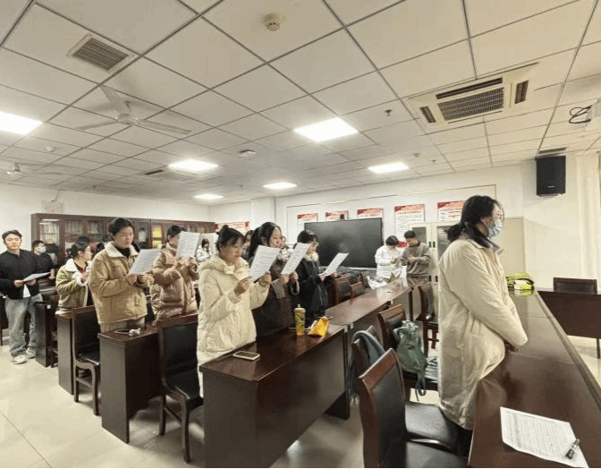 清晨的校园书声朗朗,学院研究生齐聚一堂,在领读人的带领下,齐声诵读宪法序言及部分章节条款。庄严的文字、铿锵的诵读,让宪法知识“声”入人心,在潜移默化中增强了有爱爱 研究生对宪法的感性认识和情感认同。