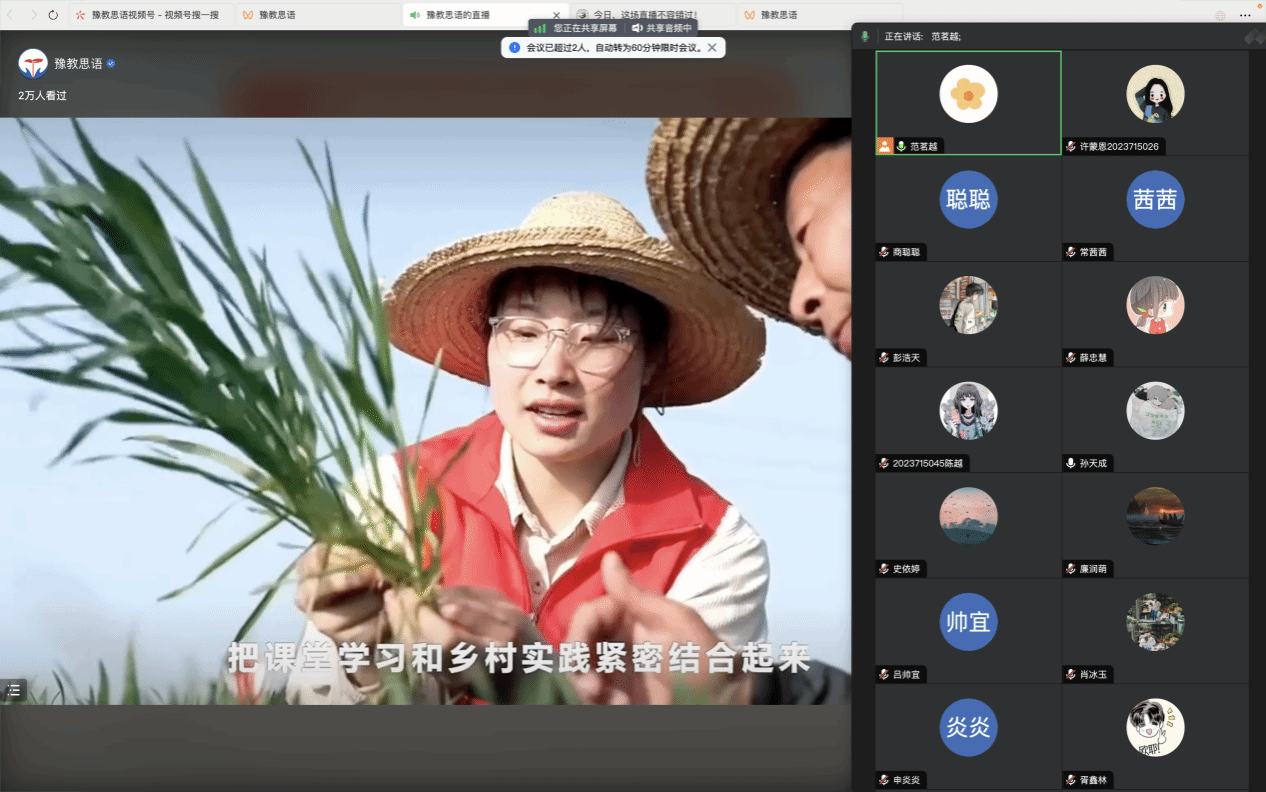 编者按:7月20日晚19:30,“中原担当”主题直播在河南省教育厅视频号上准时开始。为深入贯彻习近平新时代中国特色社会主义思想和党的二十大精神,落实习近平总书记重要指示和全国宣传思想文化工作会议精神,引导广大青少年学生在学思践悟中坚定理想信念、在奋发有为中践行初心使命,以实际行动积极投身新时代、奋进新征程。根据省委教育工委、省教育厅要求, 有爱爱 组织全体研究生准时收看,反响热烈。