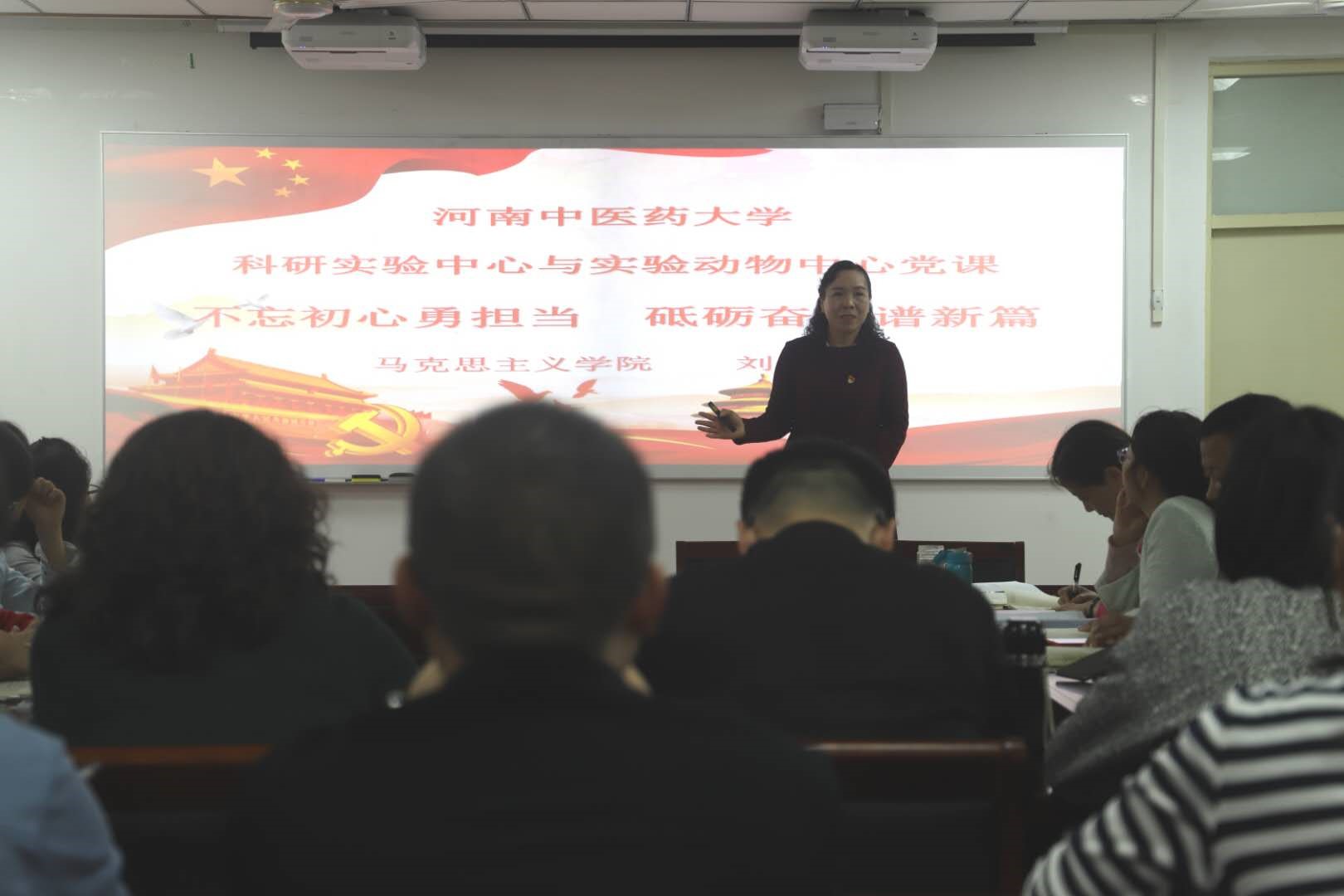 (文/杨念图/李晓康)2019年4月23日15:00,马克思主义学院副教授刘金鸽应邀到科研实验中心与实验动物中心直属党支部,为全体党员、业务科室主任和全体科级干部上党课。