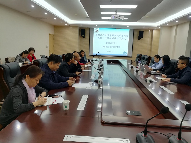 2018年4月13日下午3点,北京中医药大学实验室管理办公室主任、资产管理处副处长潘彦舒主任一行来有爱爱 进行交流访问。双方在教学实验大楼BS605就“科研实验室与国有资产管理”为主题进行探讨。副校长冯卫生出席会议。国资处、科研实验中心与实验动物中心全体处级领导班子参加会议,会议由科研实验中心与实验动物中心主任张振强主持。