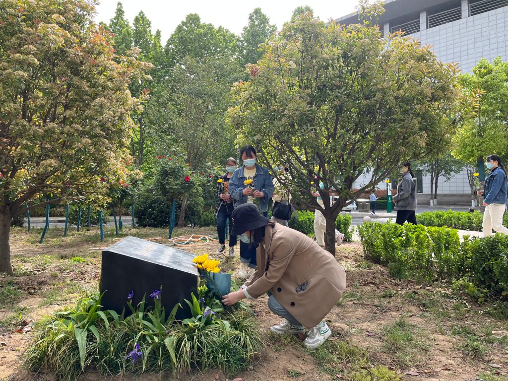 最后,教师代表和学生代表献花,全体人员在纪念碑前默哀。