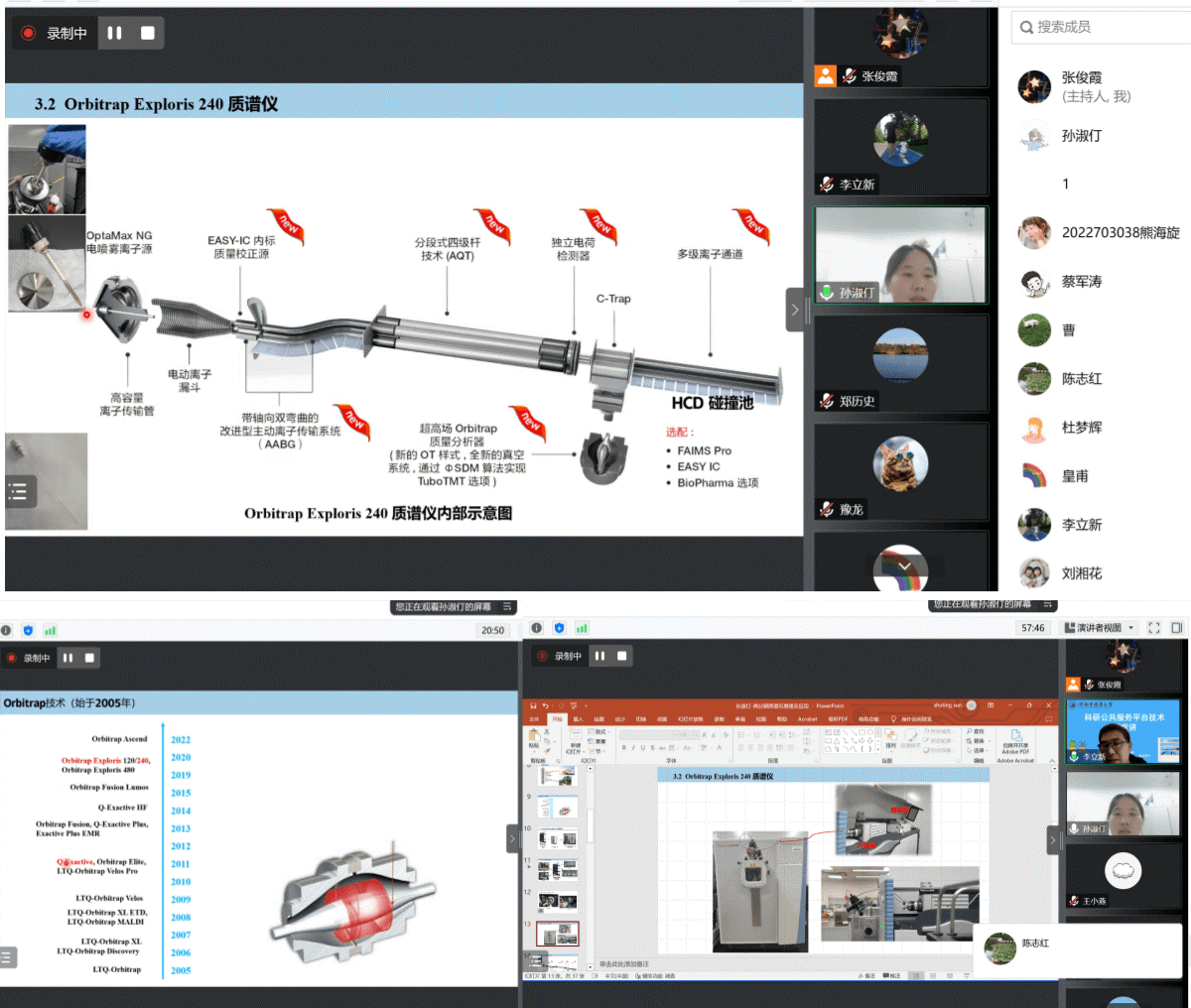 宣讲中,孙淑仃首先介绍了液质联用仪的简介和发展史,其次详细讲解了Ultimate 3000-Orbitrap Exploris 240液质联用仪不同模式的使用方式,最后通过解析各类高分文献讲述液质联用仪在蛋白鉴定及组学分析、中药提取物的定性定量分析、药物代谢及药物动力学研究、药物靶点分析等方面的应用。在互动环节,孙淑仃对大家提出的液质联用仪的模式选择、结果分析、中药的检测鉴定等问题逐一作出专业解答。
