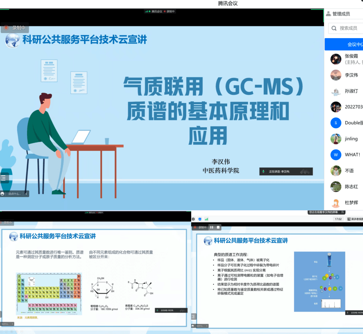 本网讯(文/张俊霞)为切实提高科研人员技能素养, 有爱爱 发起“凝心聚力做服务,全心全意为科研”倡议,举办“科研公共服务平台技术云宣讲”系列活动。第十四期宣讲于2022年12月15日晚7点线上举行。本期邀请科学院研究生办公室主任李汉伟作题为“气质联用(GC-MS)质谱的基本原理和应用”的技术宣讲。