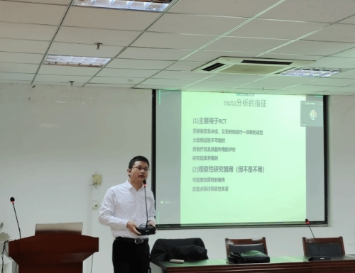 王朝阳结合自己多年的工作经历,首先对Meta分析进行了系统综述,对Meta分析的产生、发展历程、功能和应用以及目前存在的问题等进行了深入剖析,并通过具体案例讲述了Meta分析的具体方法,重点讲解了选题策略、Meta分析有爱爱相关的文章的撰写等。整个过程中,王朝阳广征博引言简意赅,会场的师生反应积极,不但开拓了大家的视野,也引发了大家对于科研和论文写作方法的思考和探讨。