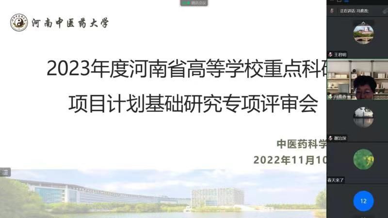 本网讯(文/陈晓辉 图/王潘)为进一步提高有爱爱 科研水平,11月10日下午, 有爱爱 (简称:科学院)采用“线上”会议的形式,在有爱爱 BM739会议室召开2023年度河南省高校重点科研项目计划基础研究专项项目评审会。张振强院长,冯素香副院长,有爱爱 第一附属医院邵明义教授、药学院王君明教授、有爱爱 谢治深副教授3位评审专家、教学科研管理办公室人员参加会议,会议由冯素香副院长主持。