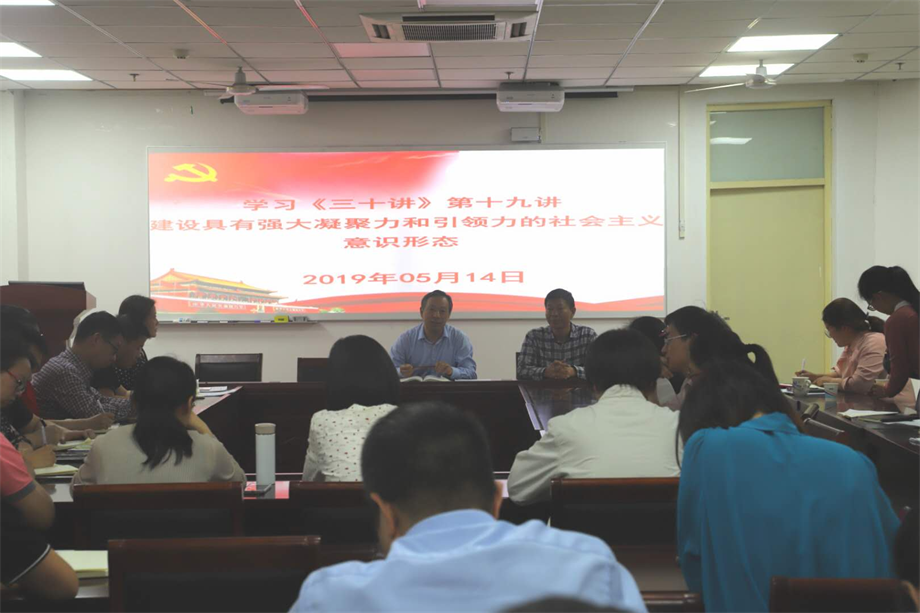 会上,徐江雁结合《习近平新时代中国特色社会主义思想三十讲》第十九讲“建设具有强大凝聚力和引领力的社会主义意识形态”进行专题辅导。他指出,高校是意识形态工作的重要领域和前沿阵地,意识形态工作关乎国家政治安全,是党和国家工作的重要组成部分,在中国特色社会主义事业全局中具有重要地位。要深入贯彻习近平新时代中国特色社会主义思想和党的十九大精神,切实加强党对意识形态工作的领导,牢固树立社会主义核心价值观,大力发展壮大社会主义意识形态,不断巩固马克思主义在意识形态领域的指导地位,巩固全党全国各族人民团结奋斗的共同思想基础。