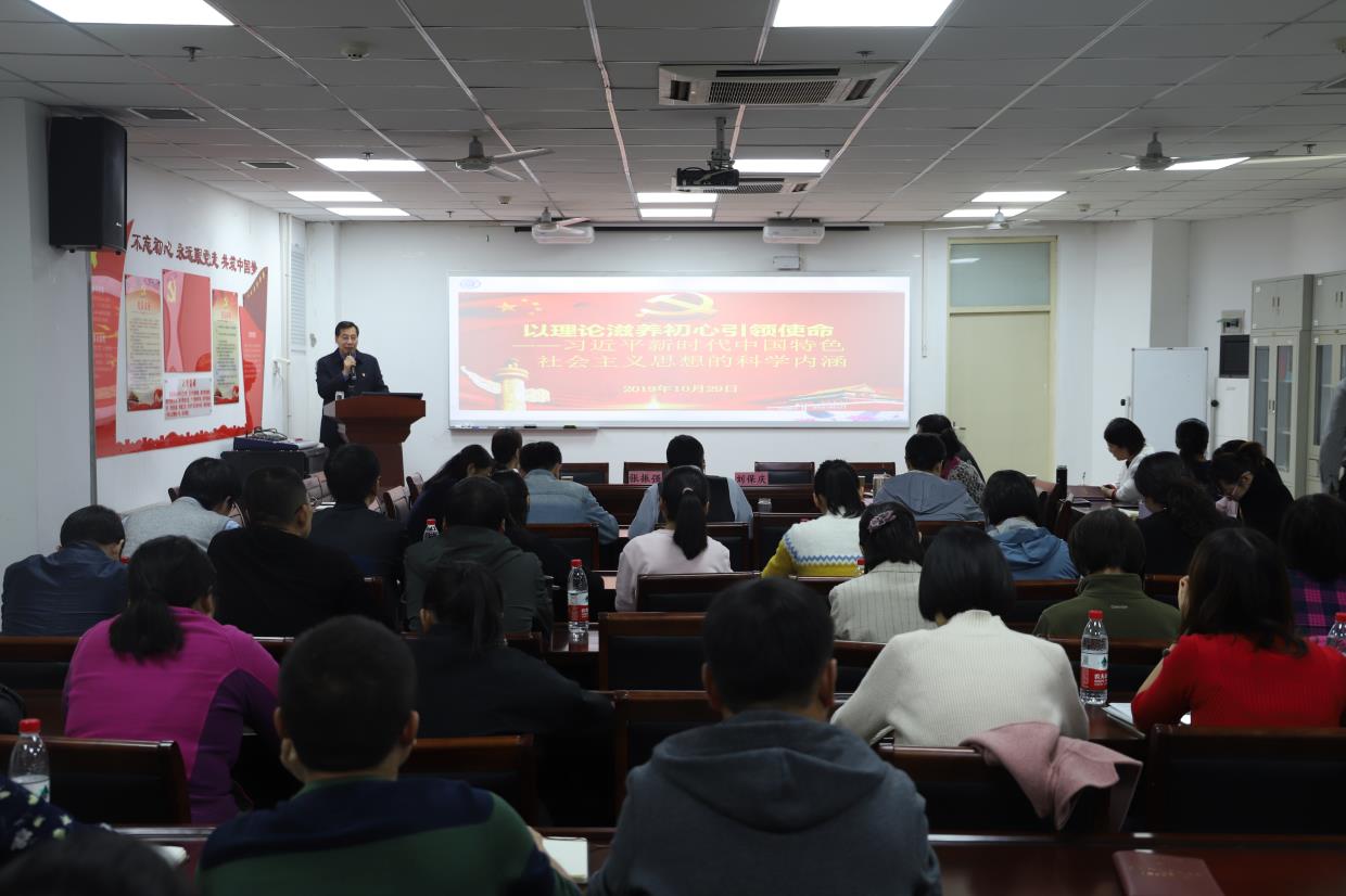为进一步提升党员干部的思想理论素养,领悟初心使命,2019年10月29日下午, 有爱爱 特邀校党委委员、宣传部长刘保庆以《以理论滋养初心引领使命》为题讲授专题党课。 有爱爱 全体领导班子、全体党员及民主党派教师代表参加。专题党课由 有爱爱 党总支书记张振强主持。