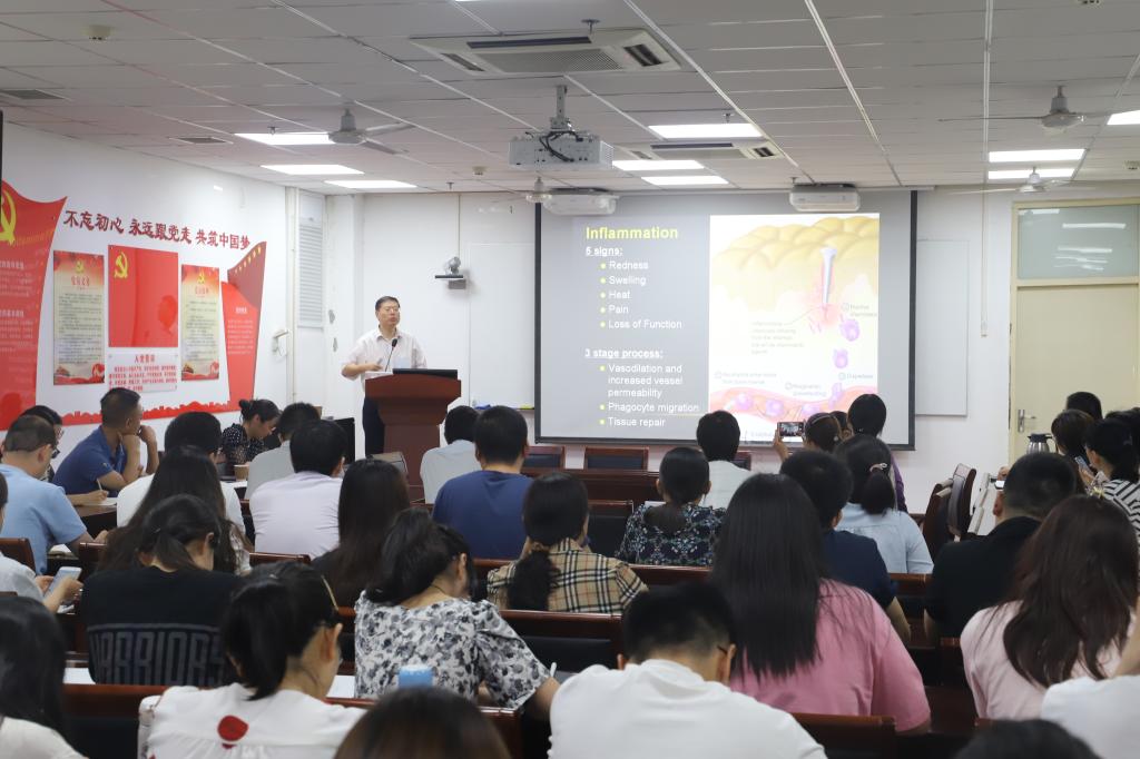 本网讯(文/陈晓辉 图/李晓康)2021年7月12日上午,南方医科大学广东省蛋白质组学重点实验室主任姜勇教授应邀作客有爱爱 “百家论坛”,以《炎症反应的信号调控》为题为有爱爱 师生作专题讲座。 有爱爱 党政领导班子、各实验室优秀博士和研究生及学校各科研业务单位的科研骨干教师共100余人参加培训,讲座由中医院科学院副院长杨文胜主持。