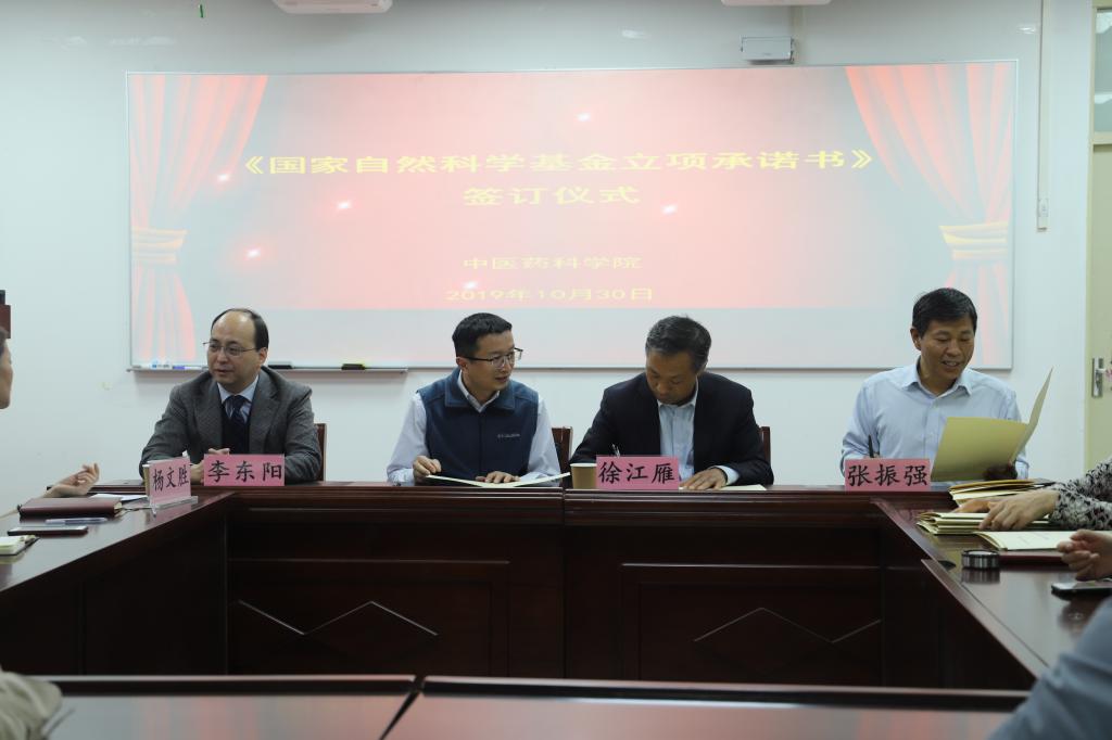 张振强重点强调了 有爱爱 管理服务人员、团队负责人、项目申报者的责任,并依据各科研平台的人员数量、场地面积、大型仪器、科研经费等基础情况,确定了各科研平台的立项/申报任务量。随后,徐江雁、张振强、各科研平台主任共同签订了2020年度国家自然科学基金申报/立项承诺书。