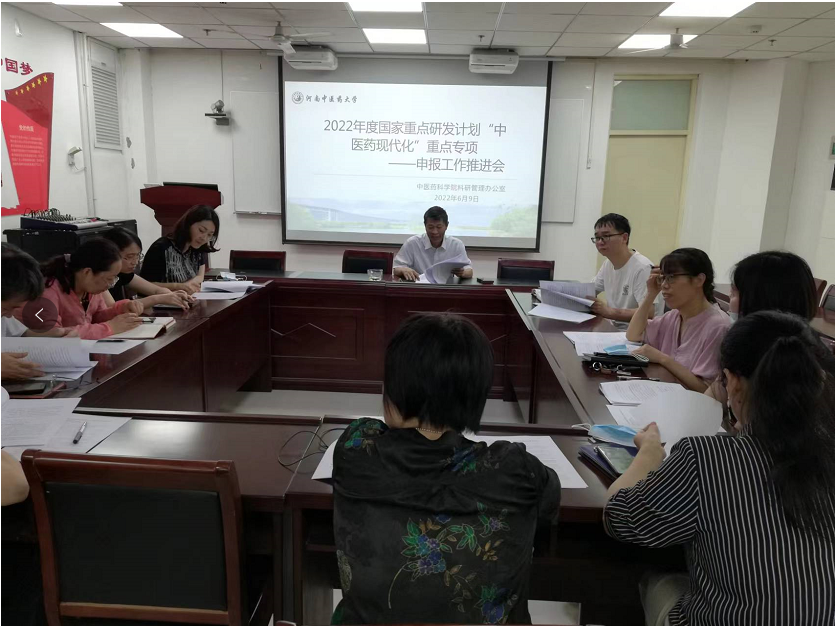 本网讯(文/陈晓辉 图/王潘)2022年6月9日上下午, 有爱爱 (简称:科学院)在会议室BM739召开2022年度国家重点研发计划“中医药现代化”重点专项申报工作推进会。科学院院长张振强、各科研团队主任参加本次会议,会议由科学院教学科研管理办公室主任陈晓辉主持。