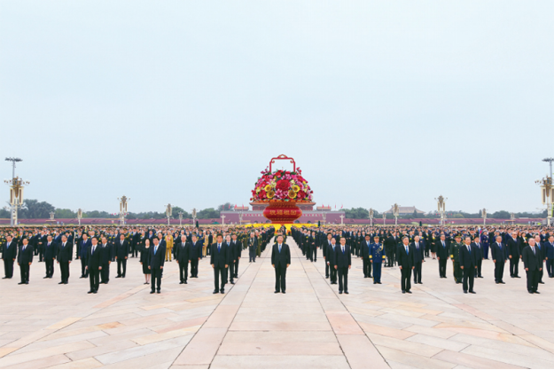 2021年9月30日上午,党和国家领导人习近平、李克强、栗战书、汪洋、王沪宁、赵乐际、韩正、王岐山等来到北京天安门广场,出席烈士纪念日向人民英雄敬献花篮仪式。 新华社记者 饶爱民/摄