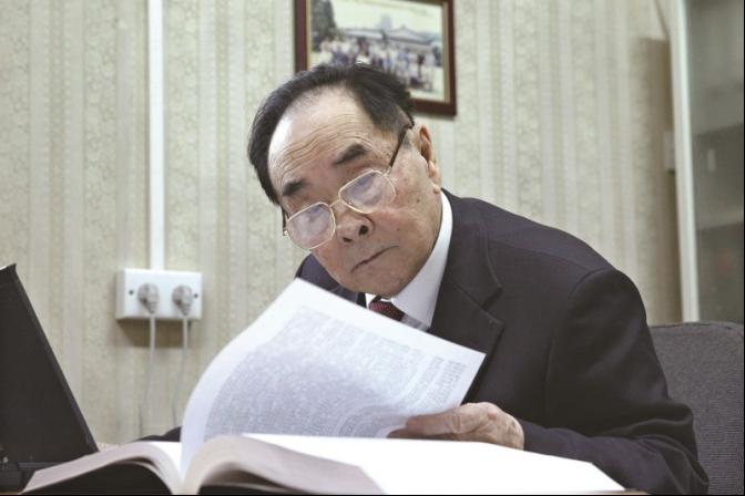 侯云德院士在办公室查阅资料。