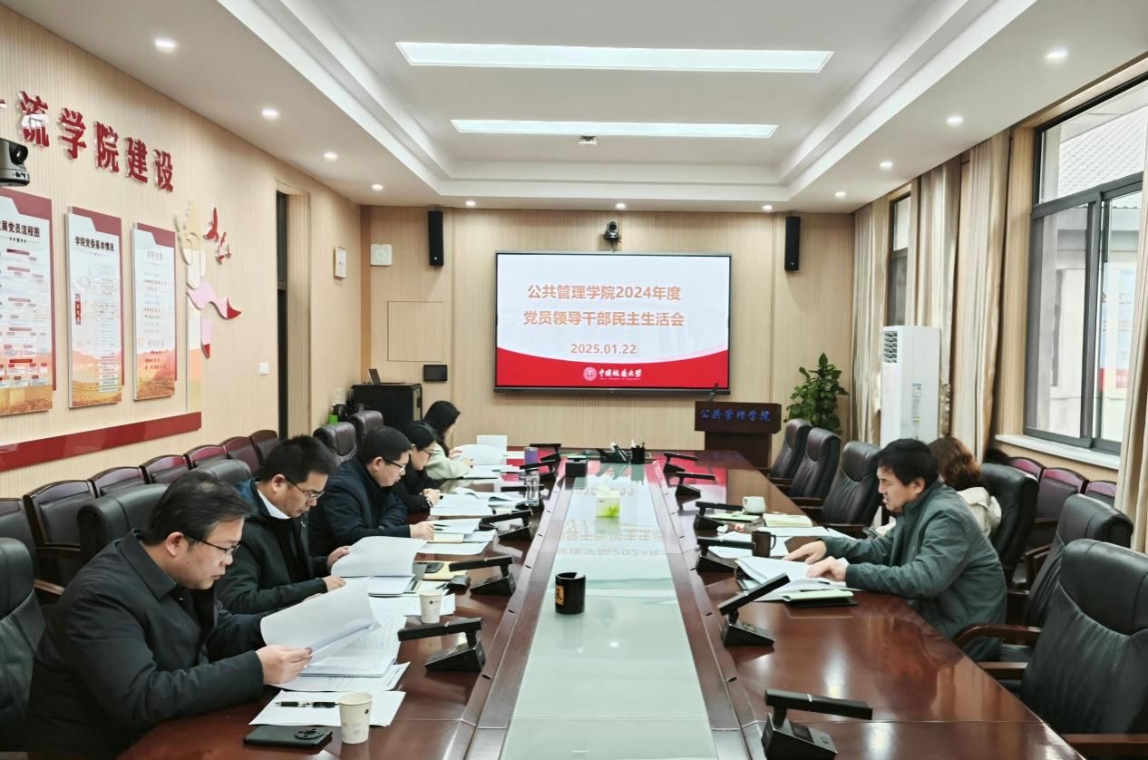 1月22日下午,公共管理学院领导班子在北二楼B209会议室召开2024年度党员领导干部民主生活会。学院领导原班子成员参加会议。按要求,胡守庚同志参加学校领导班子民主生活会。