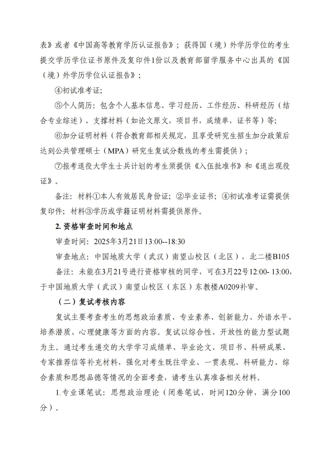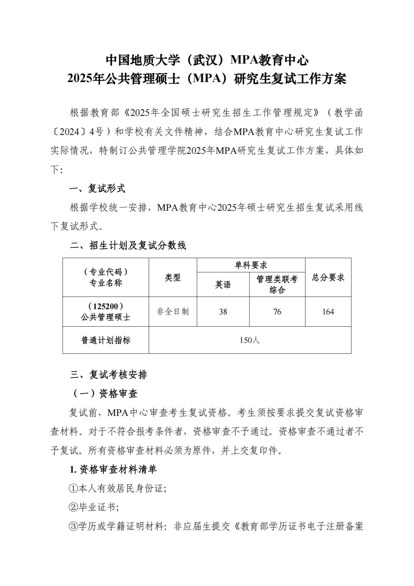 中国地质大学(武汉)MPA教育中心2025年公共管理硕士(MPA)研究生复试工作方案