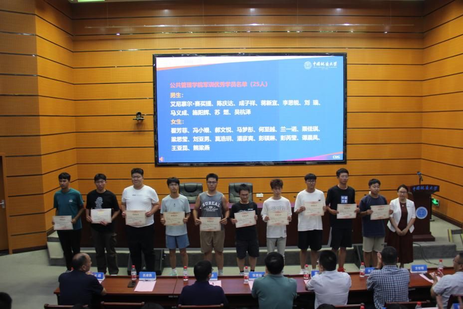 辅导员罗智霖宣读受表彰的军训优秀个人名单,朱江洪、吕凌燕为学院2024年军训优秀个人颁发荣誉证书。