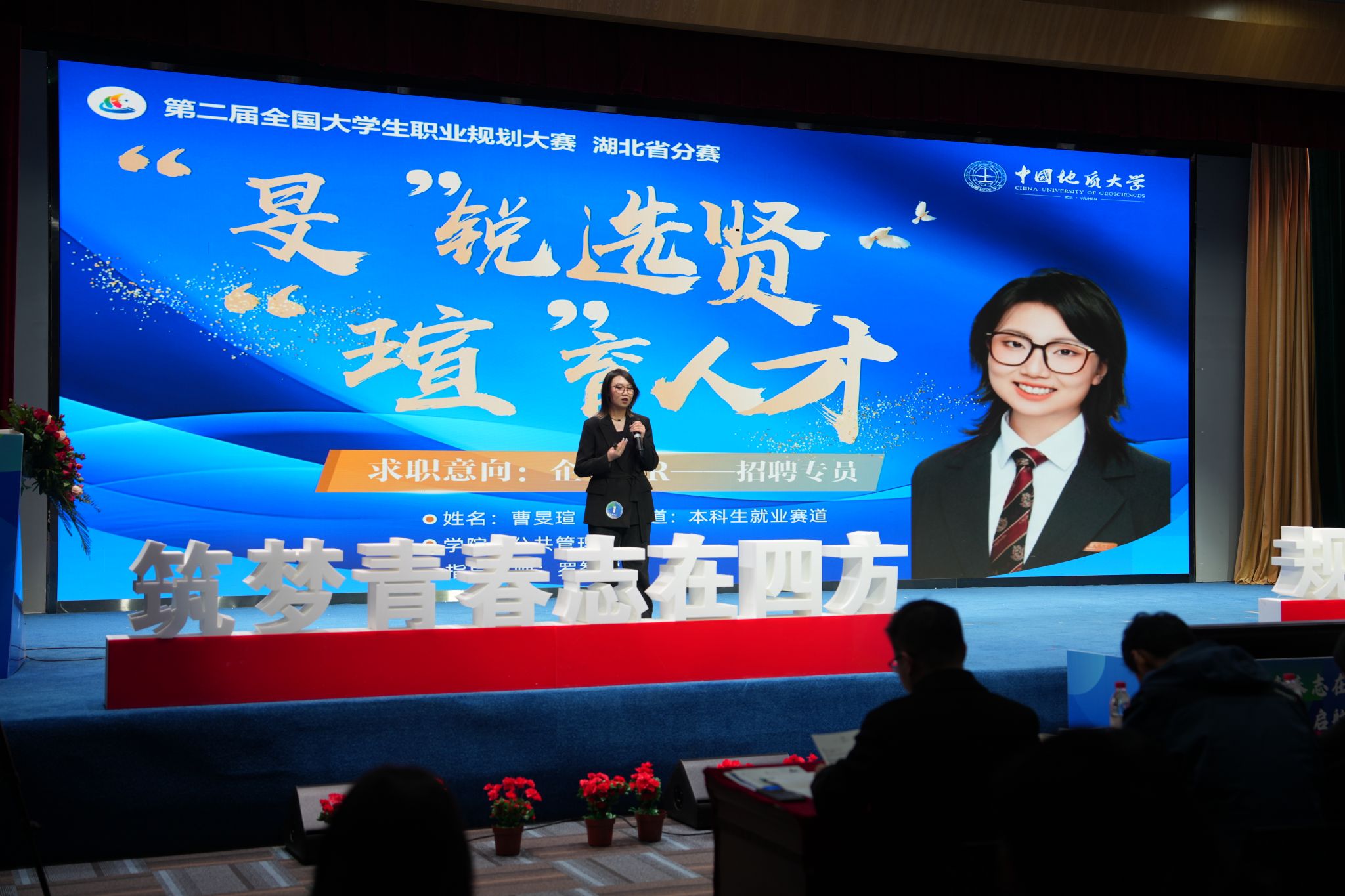 12月15日,第二届全国大学生职业规划大赛中国地质大学(武汉)校赛决赛,在南望山校区珠宝大楼多功能厅举行。湖北省教育厅一级巡视员、省生涯教育研究会会长张金元,我校副校长胡守庚,省教育厅体卫艺处副处长缪胜杰,省高校毕业生就业指导中心、省内兄弟高校就业工作部门相关领导老师,本科生院、研究生院、学生就业指导处、团委等部门负责人、各培养单位学生工作负责人,参赛选手指导教师,各界专家评委参加本次大赛。