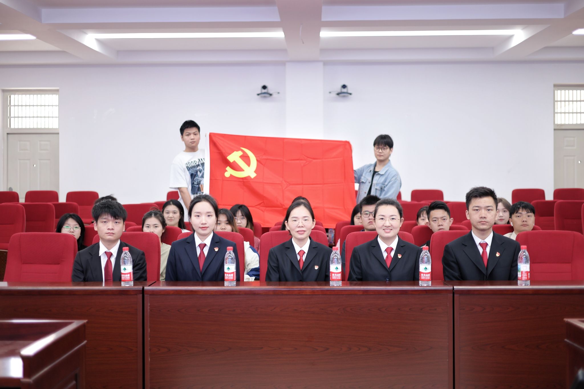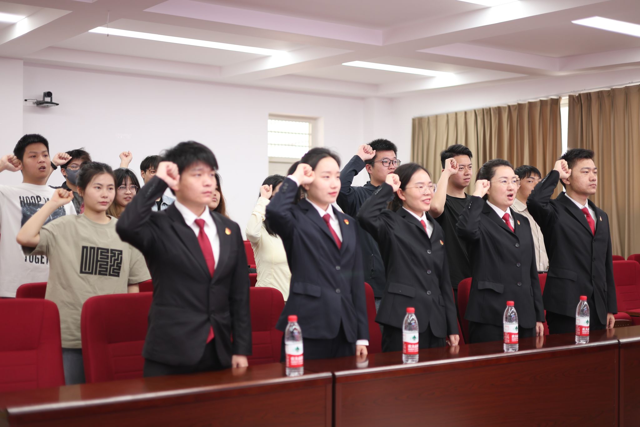 公共管理学院法学研究生第二党支部纪检委员洪潇领誓,全体党员宣誓,重温初心使命,坚定理想信念。