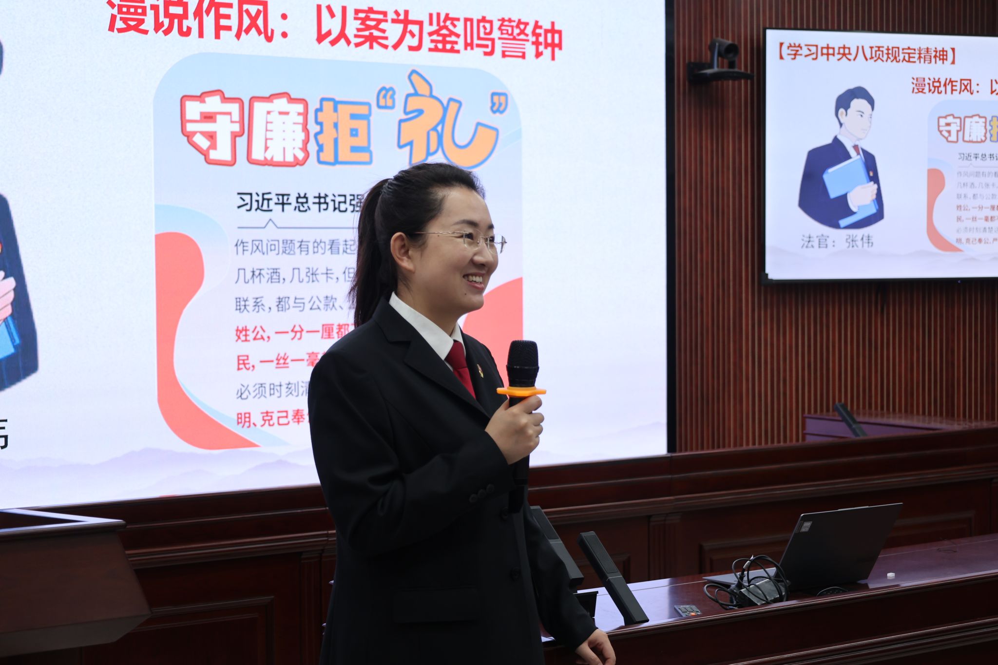 洪山区人民法院刑事审判庭党支部带领与会党员以“案例警示教育”为主题,组织开展中央八项规定精神的专题学习活动。支部创新开展违纪案件模拟庭审,选取公款旅游、违规收礼等典型违纪案例,将真实案卷中的聊天记录、报销凭证等关键证据转化为模拟法庭教学素材,组织参会党员还原案件审理过程。通过让“案中人”敲响“警示钟”,用“身边事”教育“身边人”,全体党员深刻领悟“一顿饭、一瓶酒都是围猎陷阱”的纪法深意,纷纷承诺在日常生活、学习和工作等场景,要切实将纪律规矩内化为心中戒尺。