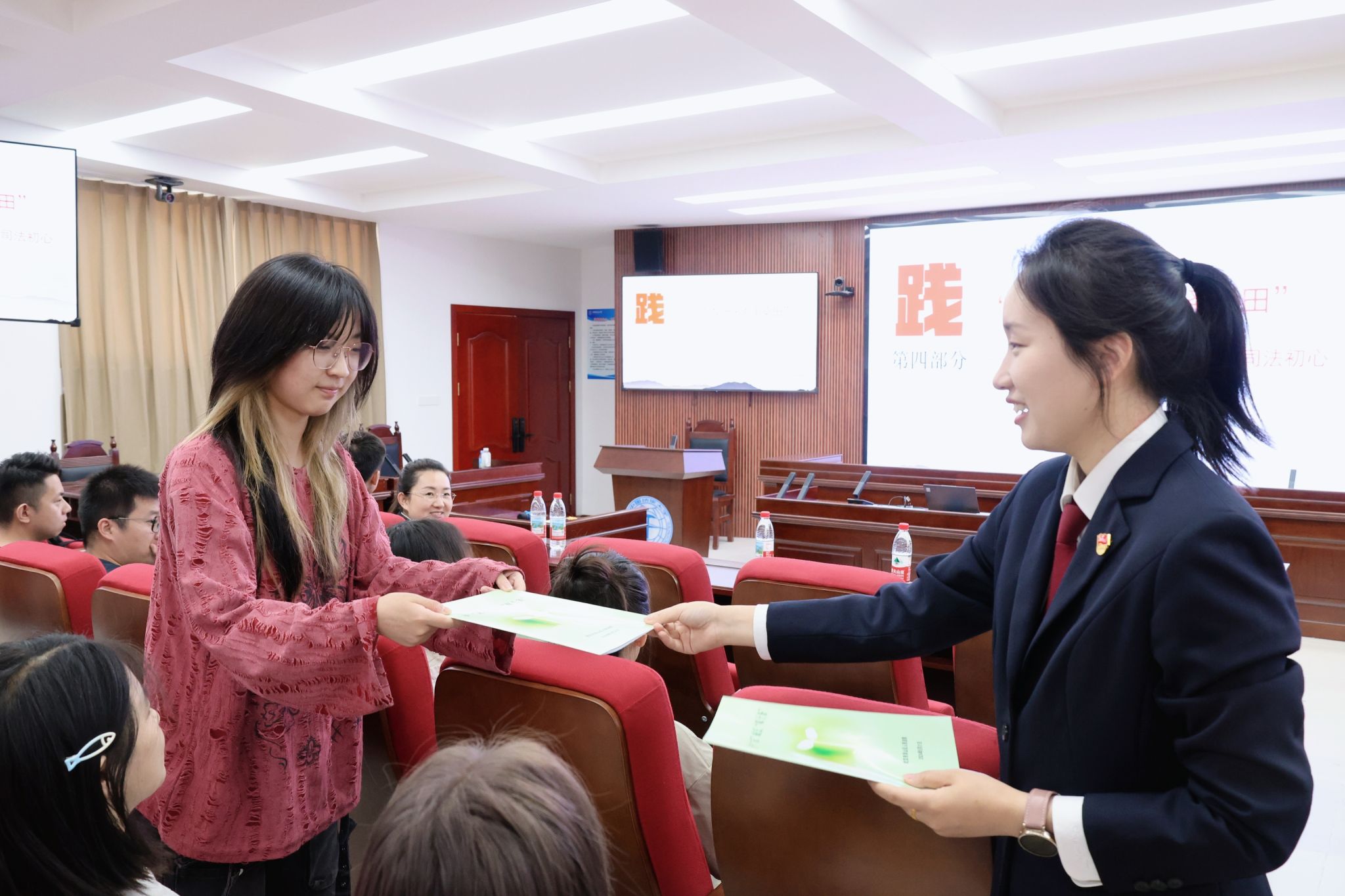 主题党日最后,党员们互赠法律典籍,分享“法律箴言摘录”和经典著作的学习感悟。双方一致表示,未来将持续深化“法院+高校”党建共建机制,通过常态化交流合作,推动实务指导与学术研讨有机融合。双方将加强资源共享,开展互学互鉴活动,共同探索法治人才培养新路径,为法学教育与司法实践深度融合作出积极实践。