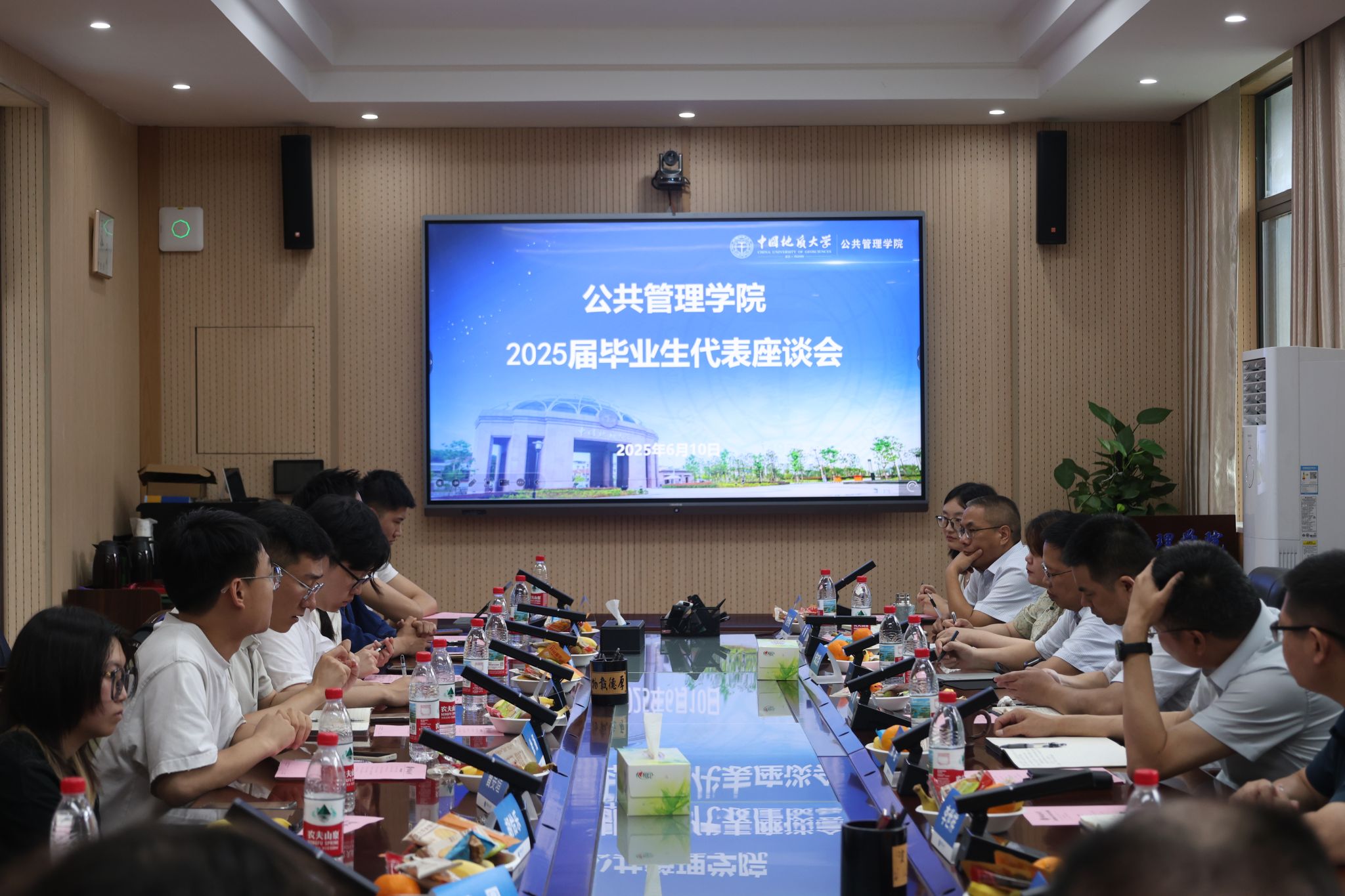 学院2025届毕业生代表座谈会于6月10日在学院B209会议室隆重举行。学院党委书记徐岩,院长龚健,党委副书记龚丽,副院长朱江洪、吕凌燕、王忠、李世祥,土地资源管理系主任方世明,公共行政系书记张光进,研究生教务秘书杨朝琦,毕业生辅导员李姝慧、王青涛及本硕博各专业毕业生代表共聚一堂,共同回顾成长历程,畅谈未来愿景,在温情与期许中为毕业生送上“最后一课”。座谈会由学院团委书记李姝慧老师主持。