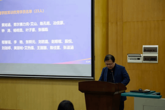 王忠副院长宣读2025级军训优秀个人表彰名单。朱江洪副院长为齐翔宇等23名同学颁发“军训优秀标兵”证书。
