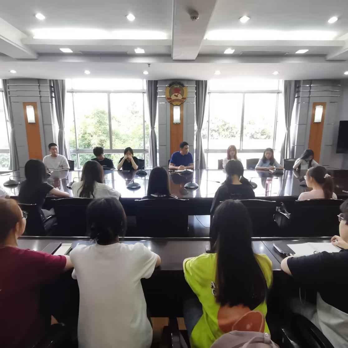 8月7日上午,公共管理学院2021级公共行政系本科生暑期实习启动仪式于武汉市洪山区政府举行。实习单位负责人就此次实习开展一次相关会议,洪山区机关工委办公室主任—陈主任简要介绍了洪山区基本情况后,向同学们提出了四点要求:第一,严格遵守机关单位规章制度,做好分配任务;第二,注意着装得体,注重言谈举止;第三,坚守保密纪律;第四,注重安全,在通勤途中注意自身安全。主任讲话过后,区政府工委工作人员再次强调本次实习注意事项及实习纪律,并向各位同学介绍实习单位分配情况,相关单位负责人前来引领各单位实习生前往具体实习部门。