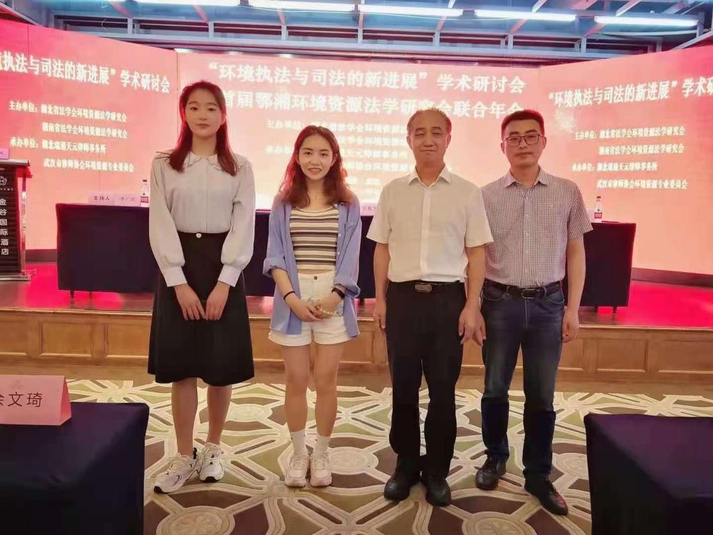 2021年7月10日,“环境执法与环境司法的新进展”学术研讨会暨首届鄂湘环境资源法学研究会联合年会在武汉国际金谷酒店召开。本次会议由鄂、湘两省法学会环境资源法学研究会共同主办,武汉市律师协会环境资源与能源法专业委员会、湖北瑞通天元律师事务所共同承办。我院黄德林教授、宋冬冬副教授、夏云娇副教授、研究生石文玉、程小丽、孙峥祎参加了本次会议。