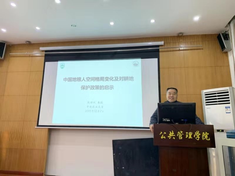 12月7日下午,应公共管理学院院长王占岐教授、副院长龚健教授邀请,中国农业大学土地科学与技术学院孔祥斌教授、武汉大学资源与环境科学学院何建华教授、焦利民教授来我校做学术报告。王占岐教授、龚健教授、胡守庚教授等土地资源管理系教师及全体在校研究生参加了讲座。