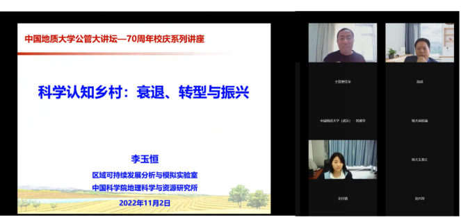 11月2日上午,应公共管理学院院长胡守庚教授、臧玉珠副教授邀请,中国科学院地理科学与资源研究所李玉恒副研究员以“科学认知乡村:衰退、转型与振兴”为主题向本校师生做学术报告。本次报告由公共管理学院院长胡守庚教授主持,采取线上方式进行,有近350名师生线上参加。