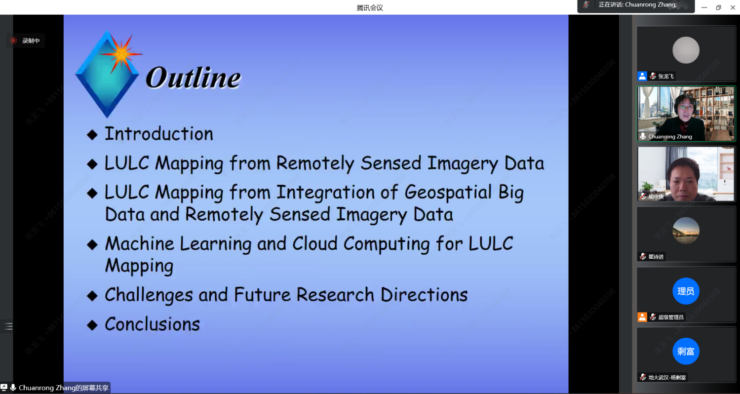 11月27日,为庆祝我校70华诞,应公共管理学院院长胡守庚教授邀请,康涅狄格大学地理系及环境科学与工程中心张传荣教授为我校师生作题为“大数据时代的土地利用与覆被制图”的线上学术讲座。讲座由胡守庚院长主持。