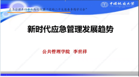 中国地质大学(武汉)公共管理学院副院长李世祥教授作题为《新时代应急管理发展趋势》的主旨报告。李世祥教授认为风险社会特征越来越明显,结合中国所具备的特殊性,发展与安全已成为新时代的主题。结合习近平总书记的重要讲话与中央文件精神,李世祥教授认为灾难预防、应急管理和安全治理三者存在着代际演化的关系,我国已形成从常态管理到应急管理、又从应急管理到常态管理的完整的、面向风险社会的公共管理体系。新时代应急管理学科发展的方向是面向风险社会治理,发展非常态的应急管理;同时,让应急管理体系成为更加开放的系统,培育和激发出市场与社会的活力,加强政府与市场、社会的协同。