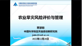 中国科学院空天信息创新研究院数字地球重点实验室贾慧聪副研究员作题为《农业旱灾风险评估和管理》的主旨报告。贾慧聪副研究员认为在全国尺度下,基于农业旱灾风险的成因机理,从系统评价的角度进行农作物旱灾风险评价研究还比较欠缺。为填补研究空白,贾慧聪副研究员依次介绍了农业旱灾风险的概念模型、农业旱灾风险评价的理论模型与EPIC评估模型,通过搜集整理相关基础数据,评价了中国玉米旱灾致灾风险和成灾风险。同时,通过对旱灾风险快速评估算法的改进,开发了“自然灾害快速评估系统——旱灾快速评估模块”,为相关政府部门及时启动国家应急救助响应、有效开展灾害应急救助提供决策支持。