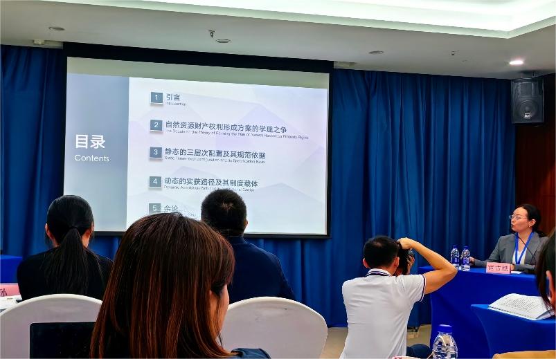 我院宦吉娥副教授受邀参加此次年会,在分论坛作了题为《基于公有制的自然资源财产权利形成机理》会议报告。宦吉娥老师汇报了选题时代背景与问题意识,系统梳理了学理论争,提出了静态与动态结合的配置方案,以此解释我国自然资源资产从全民所有到私人开发利用的配置过程。