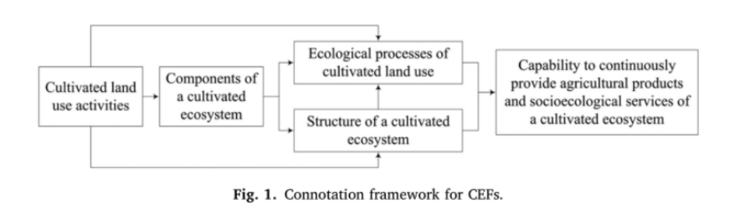 耕地利用的生态可持续性是实现可持续发展目标的重大挑战。迄今为止,开垦和集约化耕作在内的耕地利用活动(CLU)已经导致了生物多样性的大规模丧失,包括耕地生态系统功能(CEFs)的退化以及耕地生态系统的退化。耕地生态系统功能转变(FTCE)指的是区域一级的CEFs的长期变化过程。在复杂的“自然-经济-社会”互动中,耕地生态系统离不开CLU,前者依赖于后者的人工投入,如化肥、灌溉、农业机械等。CEFs本质上是耕地生态系统与CLU活动相互作用的表现,CEFs可以被视为栽培生态系统与CLU活动相互作用,持续提供直接或间接满足人类需求的农产品和社会生态服务的能力。这种能力源于在CLU活动的作用下,一定结构水平上的栽培生态系统组分所造成的CLU生态过程。