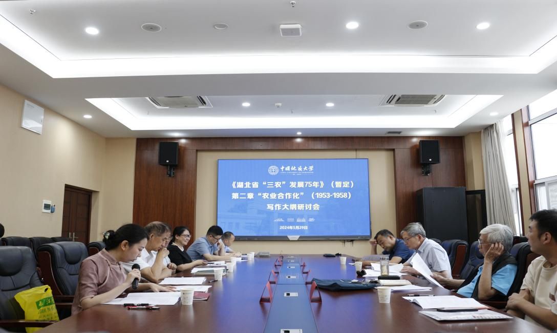 5月29日,湖北省三农问题研究会领导一行来校调研指导《湖北省“三农”发展75年》(暂定)课题研究。省三农问题研究会执行副会长兼秘书长、原中共湖北省委副秘书长刘兆麟,省三农问题研究会副会长余胜伟,省三农问题研究会副秘书长刘享平,省三农问题研究会秘书处秘书吕菲,中共武汉市委党校讲师袁婧,中共武汉市委组织部干部王原林,中国地质大学(武汉)科学技术发展院副院长郭海湘,中国地质大学(武汉)公共管理学院副院长吕凌燕,中国地质大学(武汉)公共管理学院黄德林教授,中国地质大学(武汉)新能源学院张川副教授及黄德林教授课题组其他成员参加研讨会。