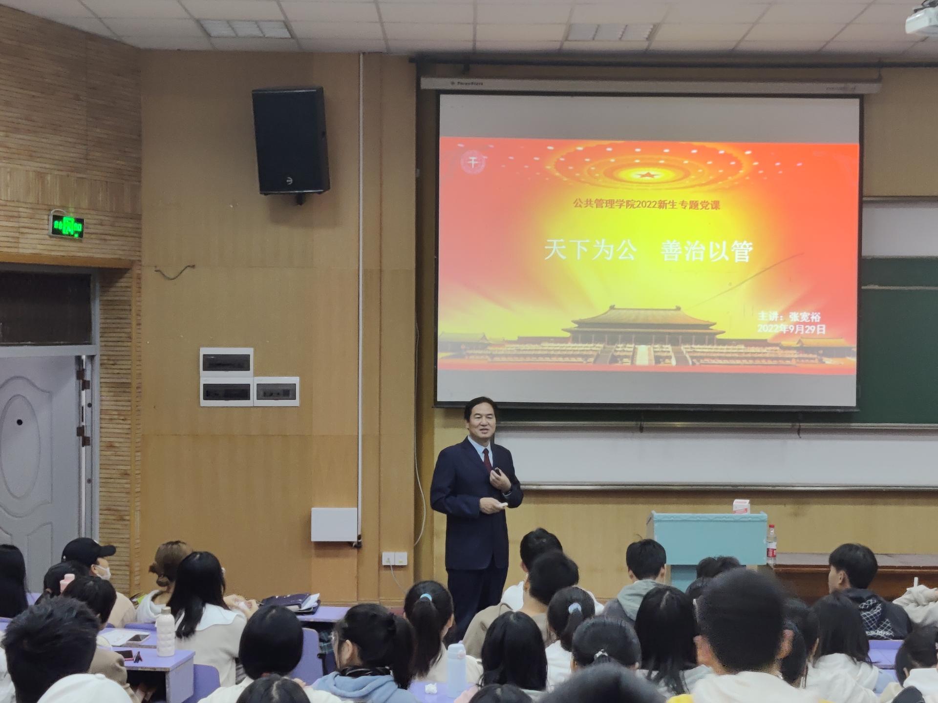为加强学院文化精神凝练宣传,10月6日下午,学院党委书记张宽裕以《天下为公 善治以管》为题为我院2022级本科生讲授专题党课。