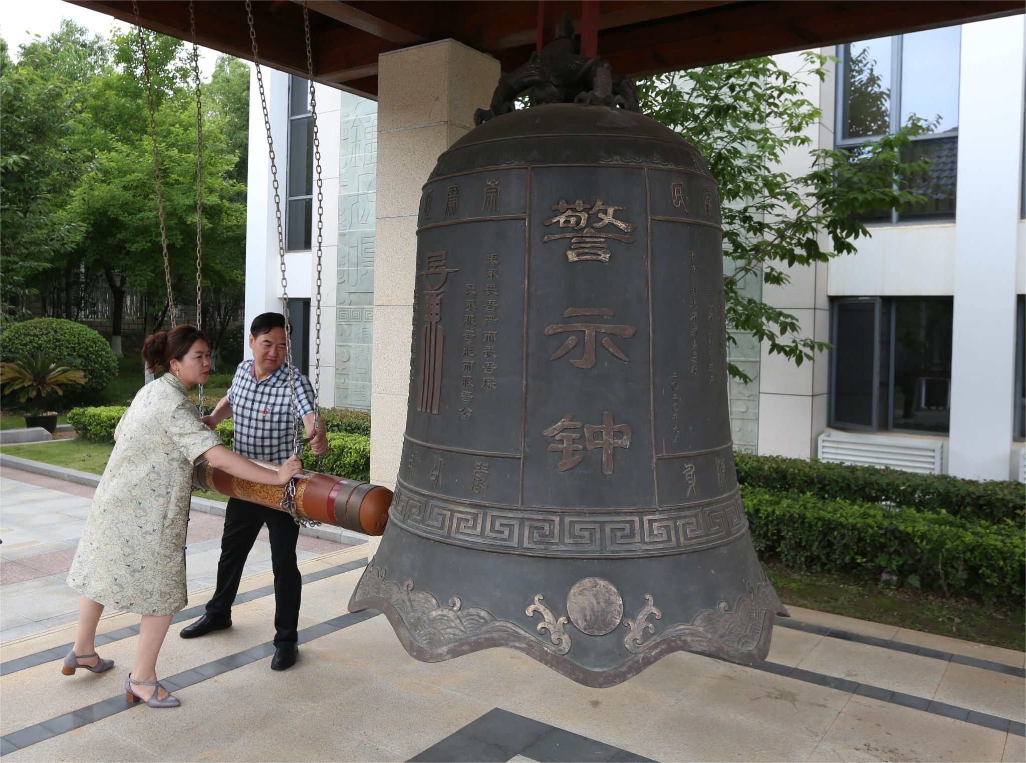 在警示教育广场,大家面向警钟庄严肃立,学院党委书记张宽裕、纪委书记龚丽代表参加活动党员同志郑重发力,撞响“警示钟”,钟声厚重悠远,发人深省,警示着在场的每一名党员要从思想上增强自觉,从行动上严格自律,始终知敬畏、存戒惧、守底线,永葆清正廉洁的政治本色。