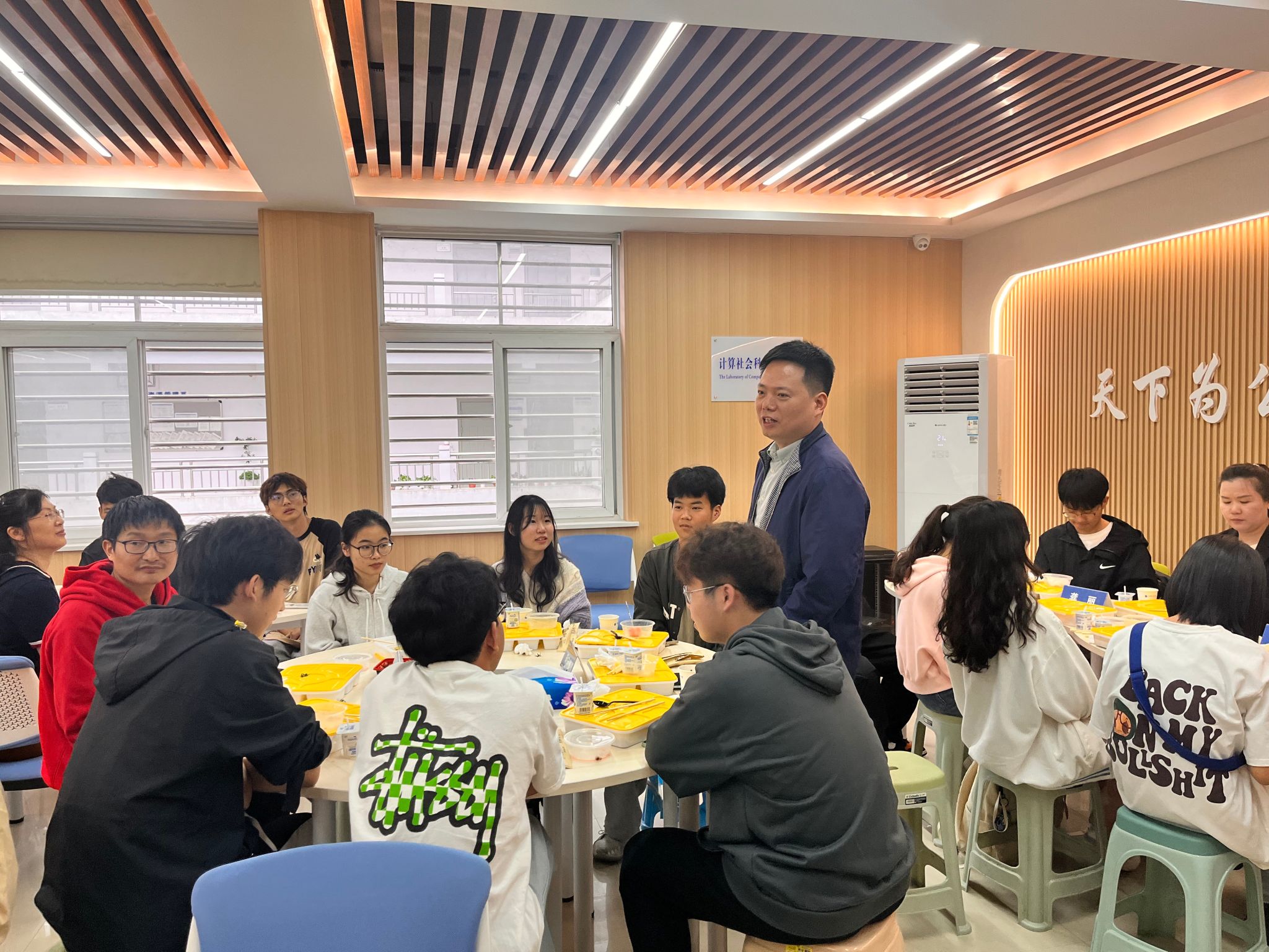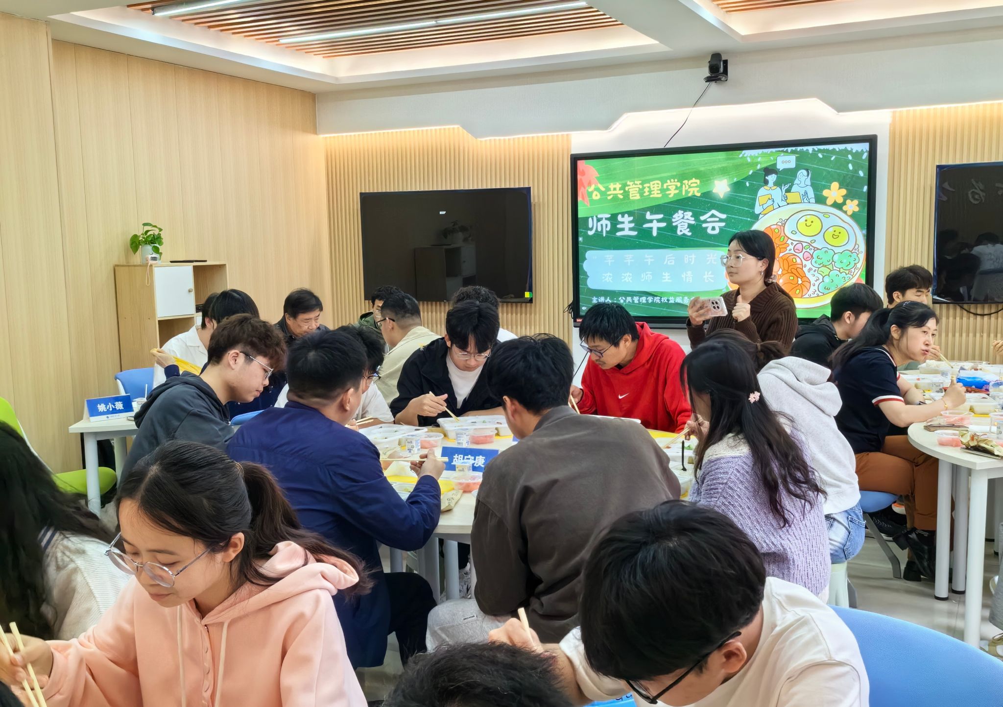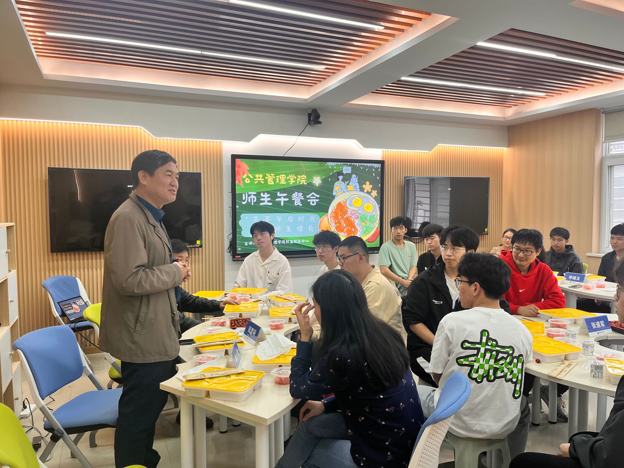 活动在温馨融洽的氛围中进行,与会师生一边享受着美味的午餐,一边就专业发展前景、专业学习建议、自身生涯规划和校园日常生活等问题进行了深入交流,老师们细心聆听同学们的疑问,并作出耐心解答。当前,2023级的同学们普遍面临着专业分流、转专业等疑惑,此次午餐会的举办很好地为大家提供了咨询和了解的途径,进一步帮助他们全方面了解专业,坚定专业学习信心。
