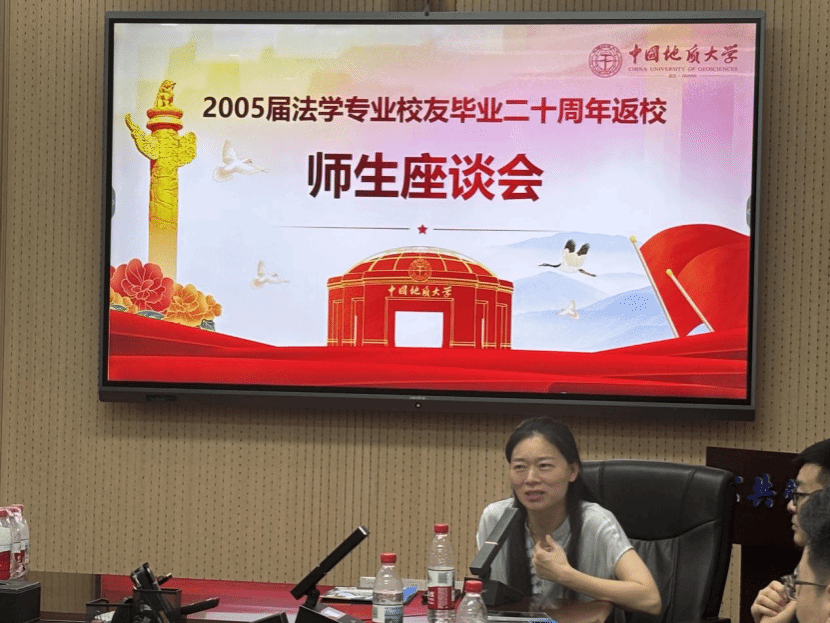 7月26日,中国地质大学(武汉)2005届法学专业三个班级约30名校友重返母校,共赴毕业二十周年之约。师生座谈会在学院B209会议室举行,学院党委副书记龚丽,副院长吕凌燕,原班级班主任、法学专业教师代表共同参会。
