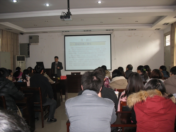 2012年11月28日上午,应中国地质大学(武汉)公共管理学院法学系夏云娇副教授邀请,台北大学知名学者、WTO研究中心主任、美国圣路易大学法学博士吴嘉生教授在公管实验楼101室作了主题为“环境保护与国际贸易”的讲座。此次讲座由院党委书记张吉军主持,张志副院长及法学系部分教师、法学专业学生共百余人参加了讲座。张吉军教授首先向大家介绍了吴嘉生教授,并对吴教授的到来表示热烈欢迎。随后,吴教授围绕环境保护与国际贸易领域的源起、关系、措施、趋势、前景角度进行演讲。