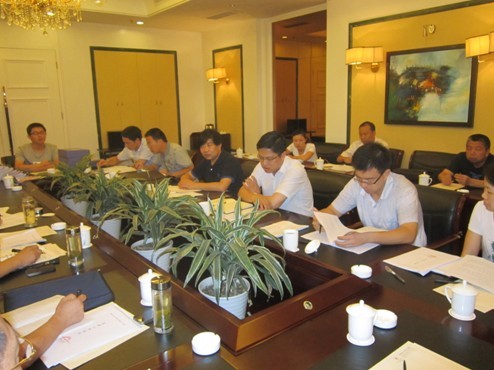 图1:验收专家组组长王占岐教授、省国土整治局总工吴鹏及专家成员听取黄梅县项目汇报