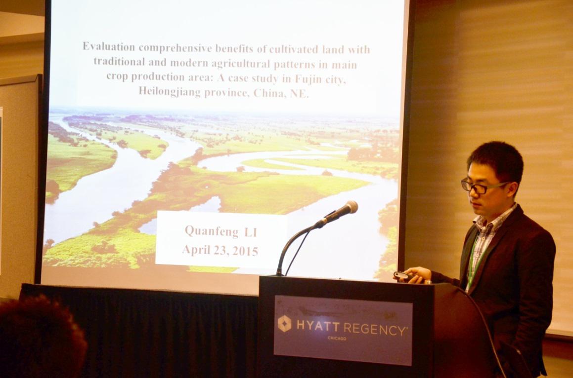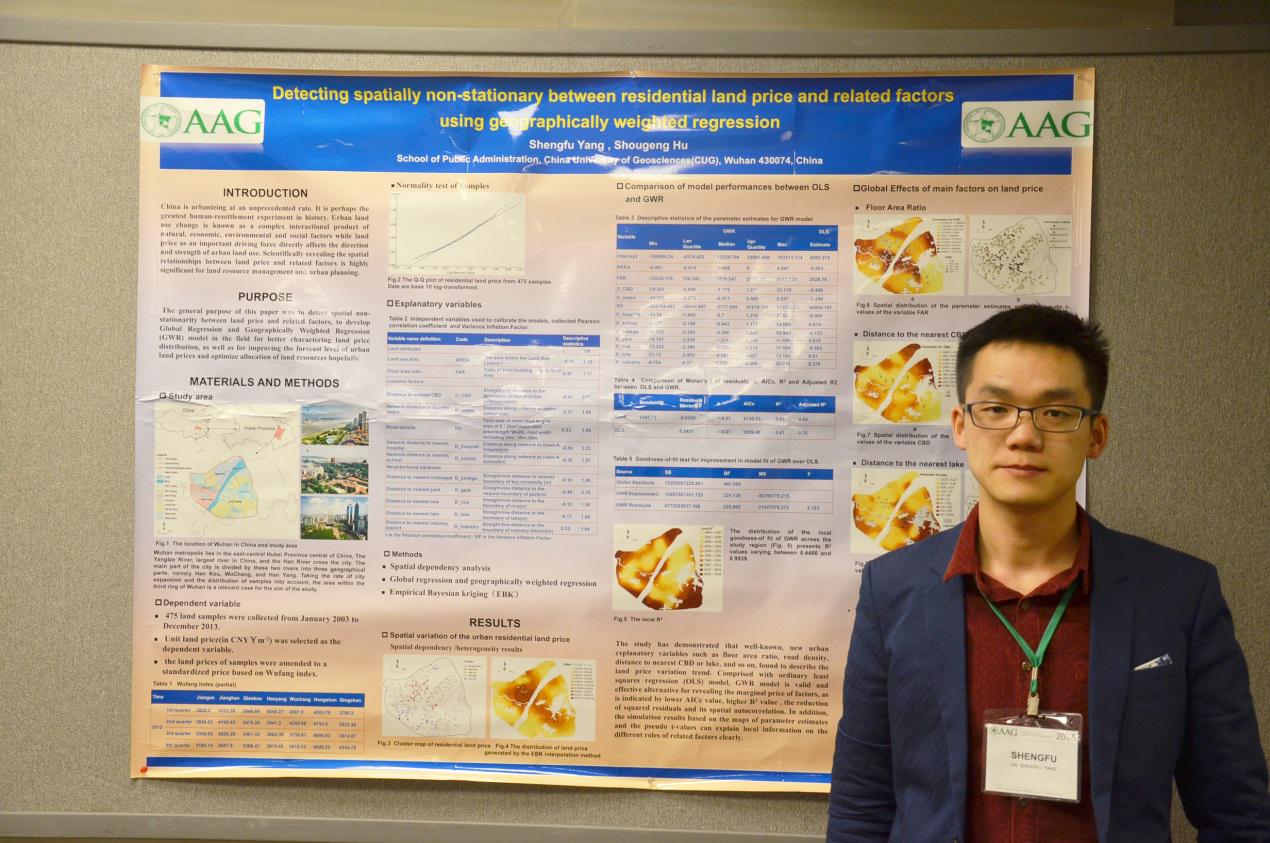 2015年4月21-25日,美国地理学家协会(AAG:Association of American Geographers)2015年年会在美国伊利诺伊州的芝加哥召开。我院博士生李全峰、杨剩富受到了学校研究生院“研究生国际交流与合作资助计划”及导师的联合资助,参加了本次会议。