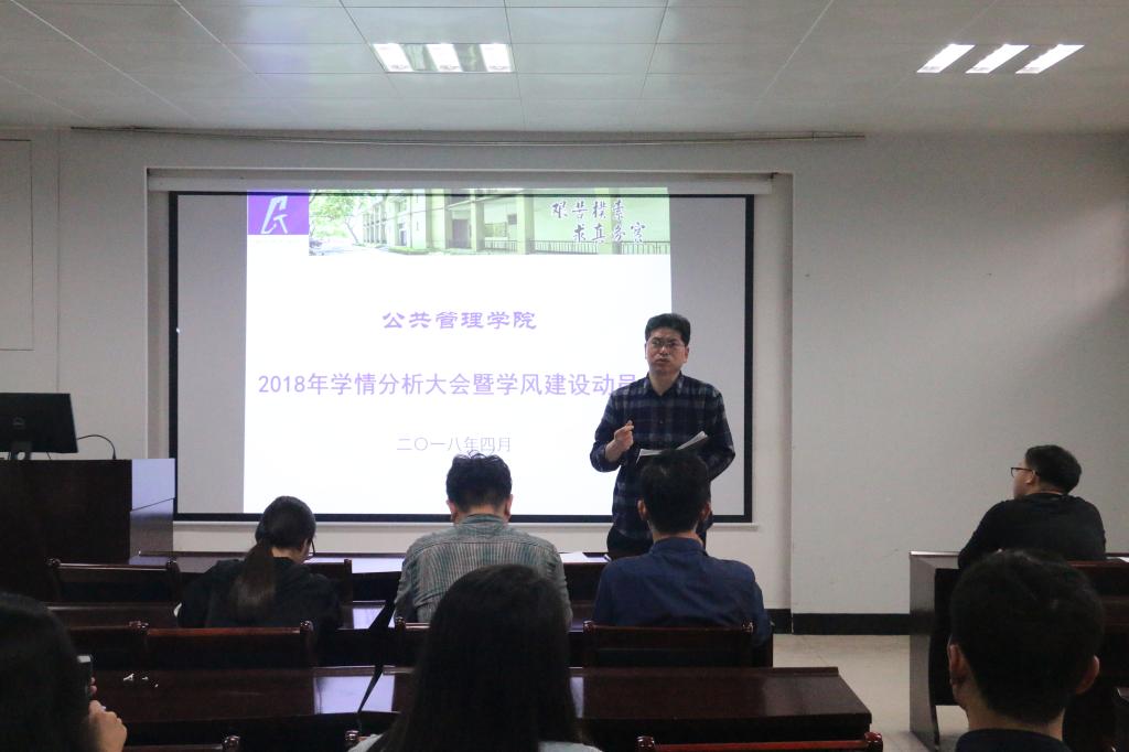 4月12日下午,公共管理学院2018年学情分析大会暨学风建设动员会于公管新楼101举行,公共管理学院党委副书记胡文勤、2017、2016、2015级各班学务指导老师和班主任、各年级辅导员参加了本次会议。