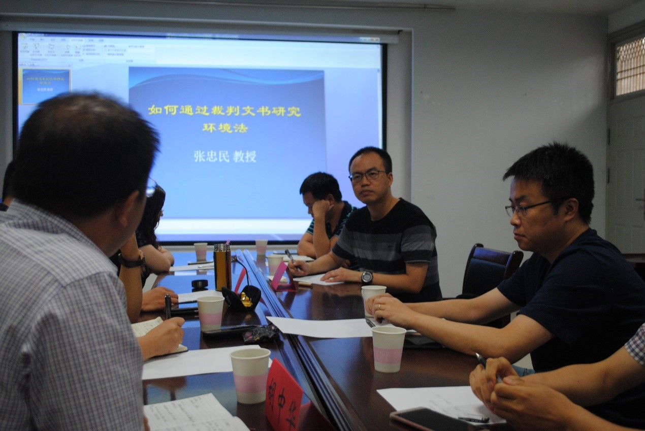 (通讯员:刘琦)2018年7月2日下午3点,我院法学系邀请中南财经政法大学的张忠民教授,中国地质大学学报编辑部刘传红主编和周振新编辑,在国土资源部法律评价工程重点实验室101举行了主题为“环境法研究方法”的学术沙龙活动。才惠莲教授主持了本次学术沙龙活动,参与交流的有胡中华、廖建求、吕凌燕、宋冬冬、郭威、刘琦老师和来自武汉工程大学的王国飞副教授,以及部分本校法学研究生。