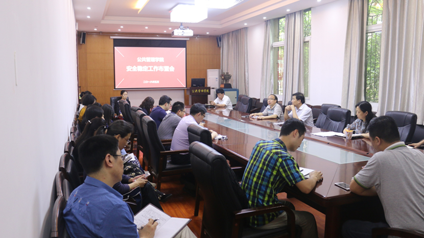 (学院通讯员)5月24日14:30,公共管理学院在B209学术报告厅召开安全稳定工作布置暨学校安全稳定工作会议精神传达会,学院党政联席会成员,院党委委员,院纪委委员,各系支部书记、支委,各系系主任、副主任,各实验室管理人员,全体班主任,学工组全体辅导员参加会议。