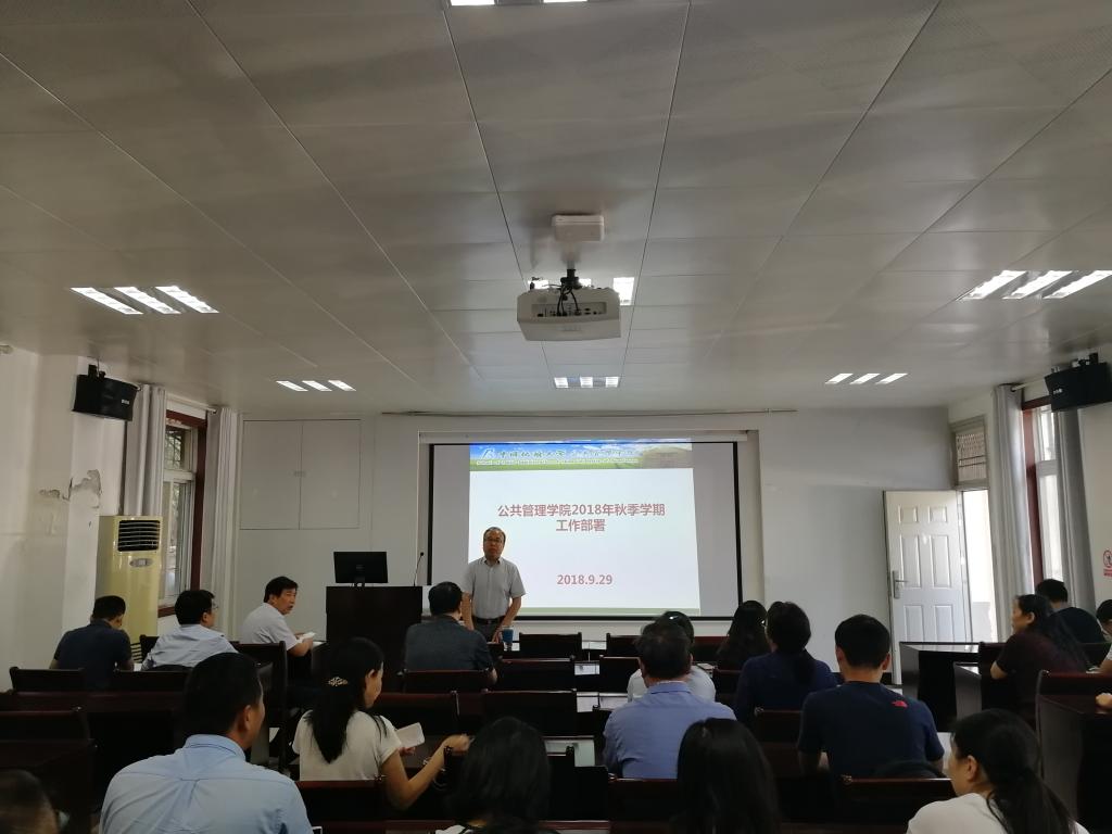 9月29日下午,公共管理学院召开2018年秋季学期工作部署会,学院党委书记张吉军、院长王占岐、学院其他领导及全院教师参加了本次会议。会议由张吉军书记主持。