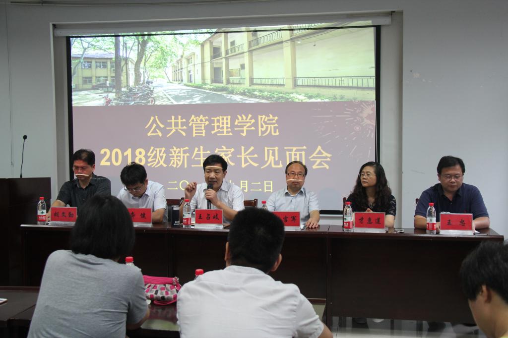 9月2日下午,我院举行2018级新生家长见面会。学院党委书记张吉军、主持工作副院长王占岐、副院长才惠莲、龚健、王忠、党委副书记胡文勤及各系主任、教师代表及新生辅导员参加了家长见面会。会议由学院党委书记张吉军主持。