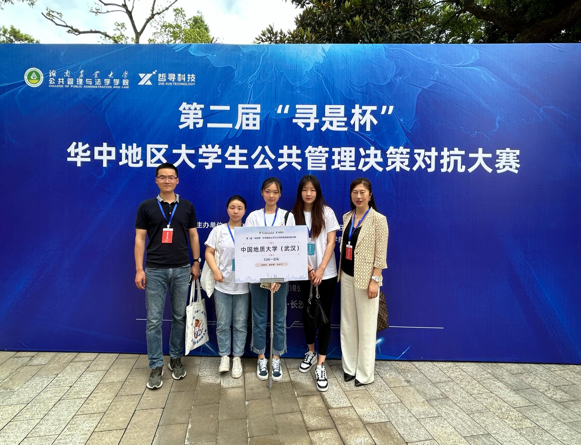 (通讯员 钱文强、刘紫怡、崔舒雨、张钊宁)2023年6月9日至11日,第二届“寻是杯”华中地区大学生公共管理决策大赛在湖南长沙湖南农业大学举行。我校由公共管理学院李晓玉、钱文强指导,2021级刘紫怡、崔舒雨、张钊宁组成的“CUG一定队”参与获二等奖。
