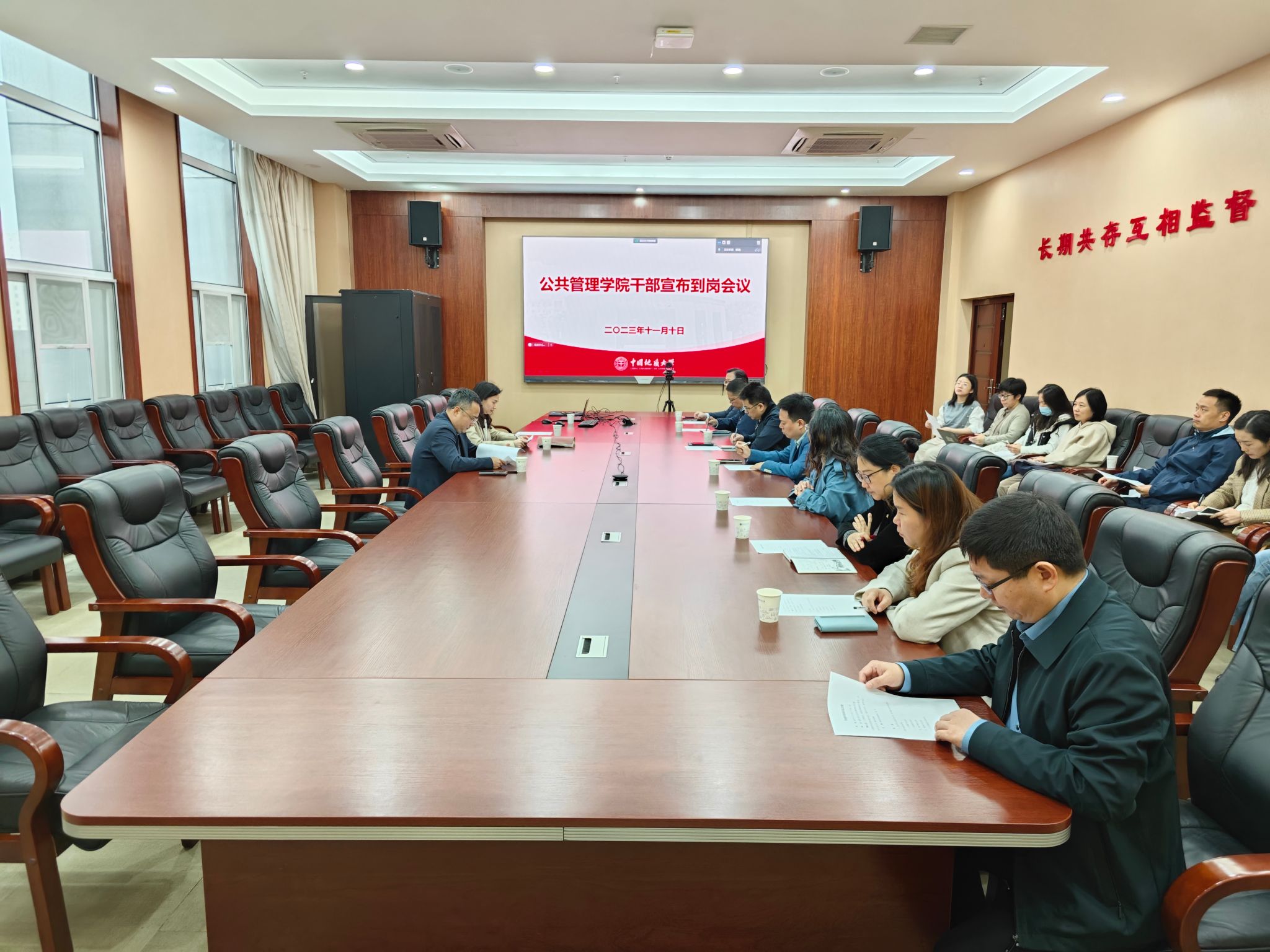 11月10日上午,学校在东区综合楼B706会议室召开干部宣布到岗会,宣布学校党委关于公共管理学院新任副院长吕凌燕的任命决定。校党委常委、副校长王力哲,公共管理学院党政领导班子成员、三级单位负责人、支部书记、院办公室人员、教师代表等参加会议。校党委组织部副部长胡肖主持会议。