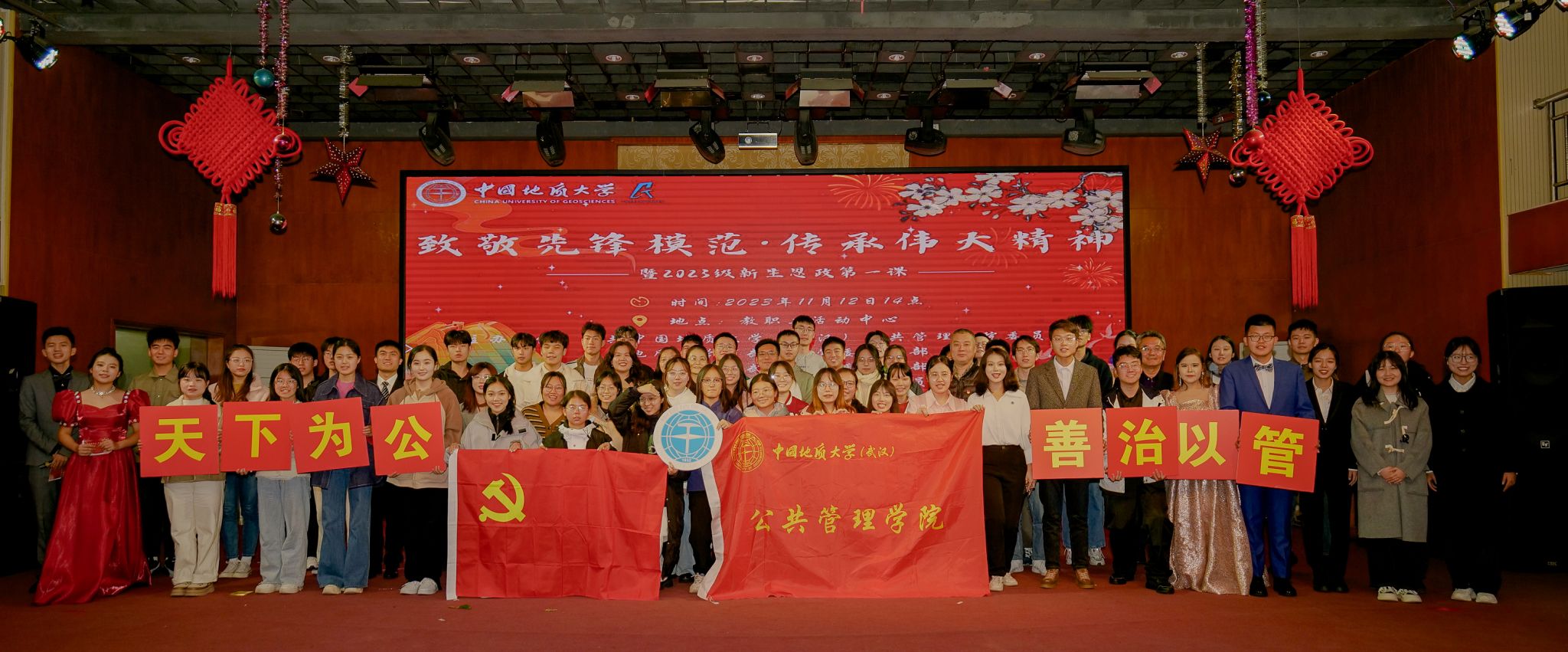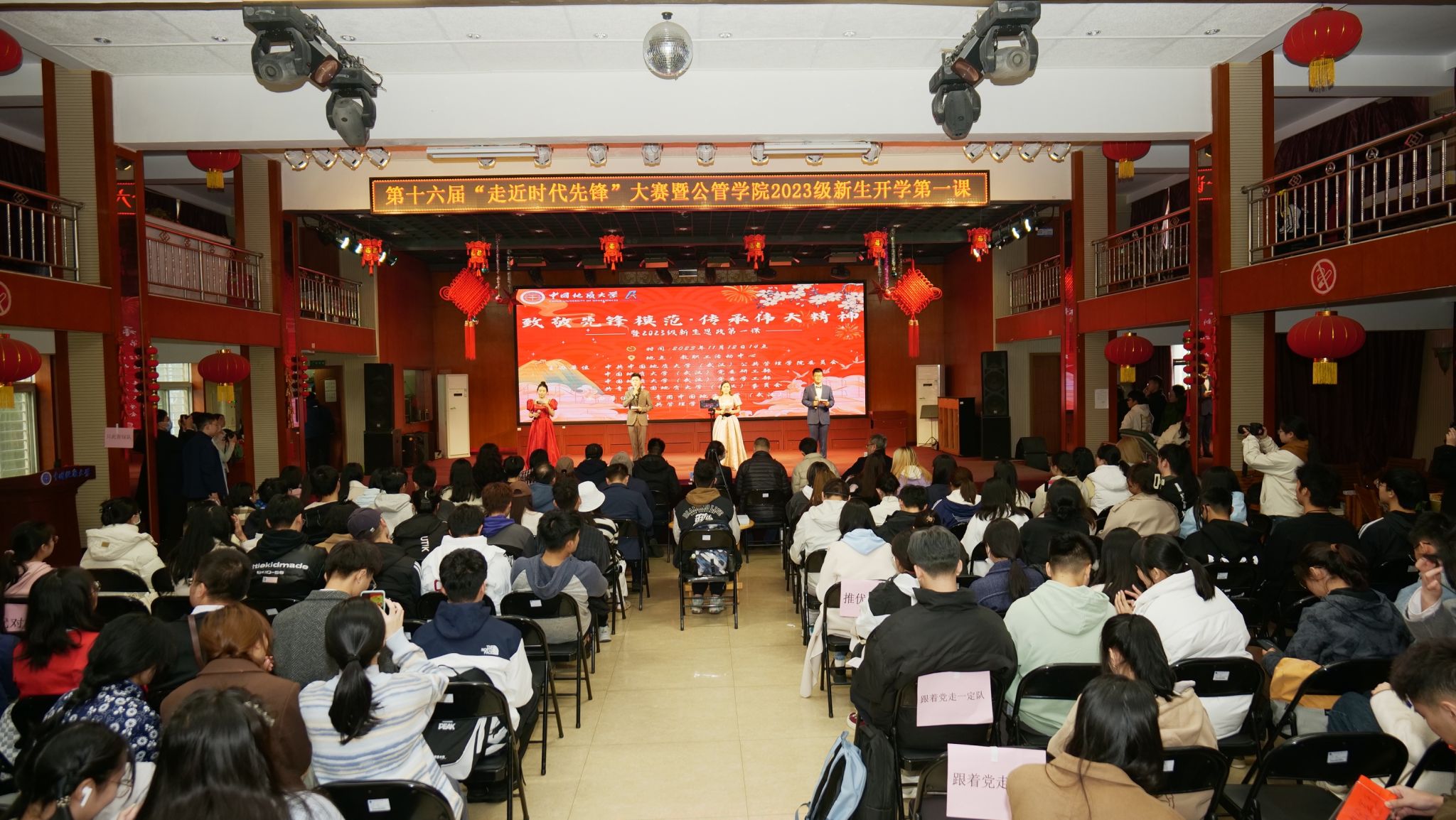 (通讯员 陈杨 摄影 陈运龙 陈羽 唐新如)“在乡村振兴的道路上,在中华民族伟大复兴的征途中,有我!”……舞台上,同学们生动演绎着时代先锋人物事迹,响亮地喊出句句铮铮誓言。11月12日,中国地质大学(武汉)公共管理学院在东区工会演播厅举办“走近时代先锋”大赛决赛活动,活动以“致敬先锋模范,传承伟大精神”为主题,是该院深入实施“时代新人铸魂工程”的具体举措之一,也是面向2023级新生上好“思政第一课”的生动实践。活动中来自全校的14支学生团队聚焦中国共产党人的精神谱系中各类代表性先锋模范,在情景剧、话剧的演绎中,通过“我来学、我来讲、我来演”的形式生动回望党带领人民浴血奋战、艰苦创业的伟大实践中一个个动人的故事。